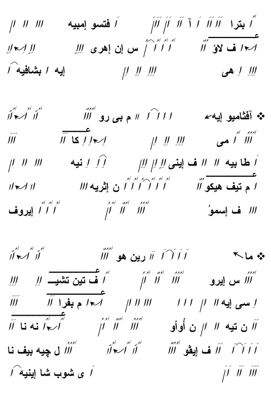 + افئيني ان هان ثيوو: ايفول خين نيف اهور: افنيفي انسا ني اششين: شا انتو فيري ايفول.