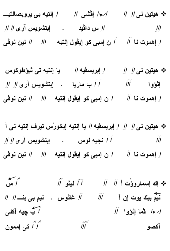 + هيتين ني ابريسفيا: انتى تي ثيؤطوكوس اثؤواب ماريا: ابتشويس أري أهموت نان امبي كو إيفول إنتيه نين نوفي.