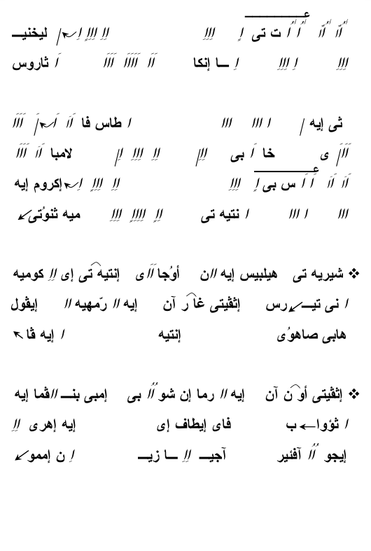 + ما تيهو إمفى إيطارى ماسف: بين سوتير انآغاثوس: إنتيف أولى ان نايخيسى ايفول هارون: إنتيف سيمنى نان انتيف هيرينى.